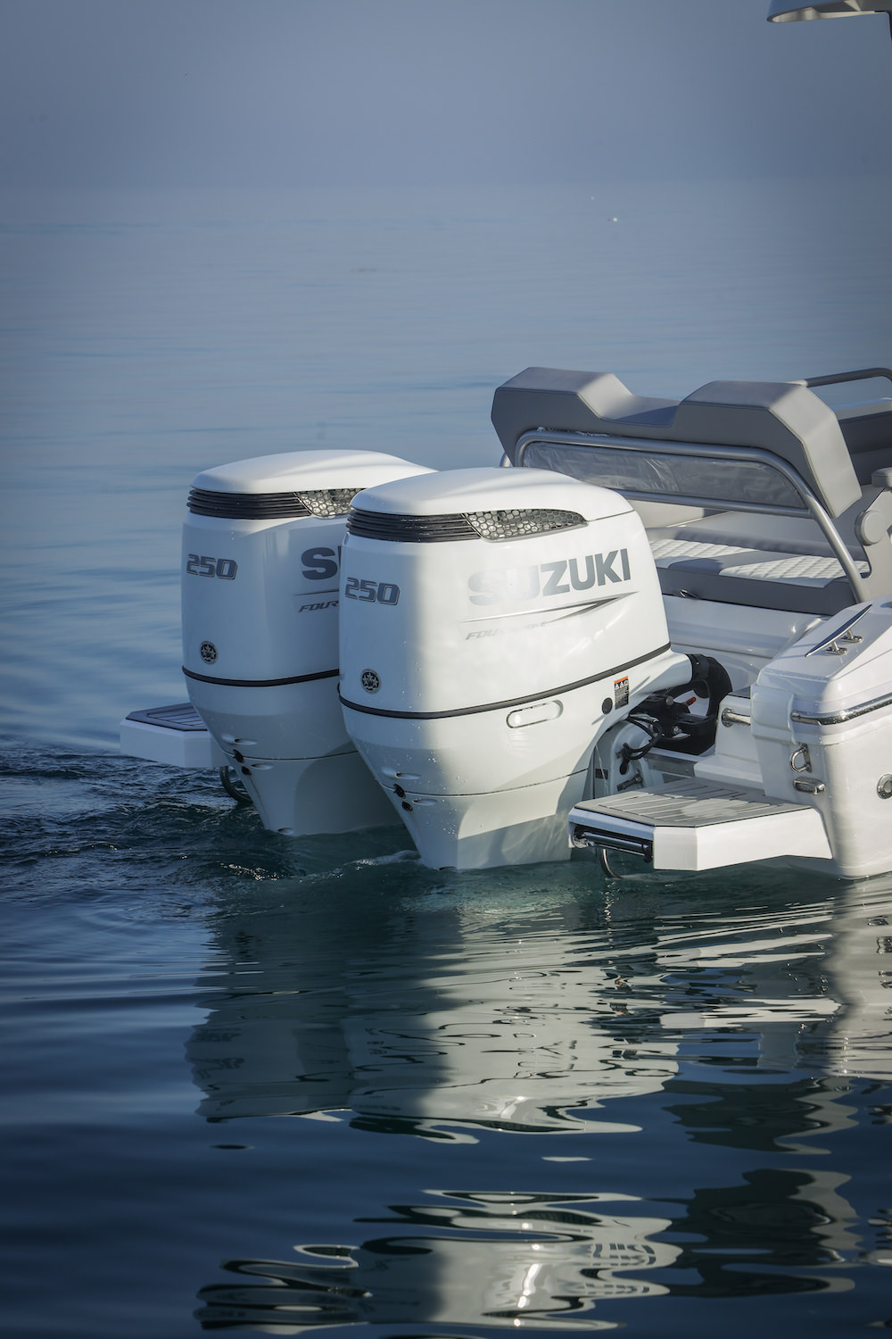 - 2 × منصات السباحة في الجزء الخلفي مع 3 درجات سلالم من الفولاذ المقاوم للصدأ بالجانب الأيمن.