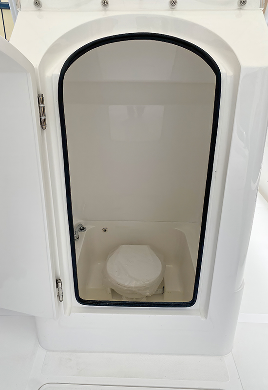 - Midships large console with screen, fresh water toilet & bathroom ventilation windows on STBD side