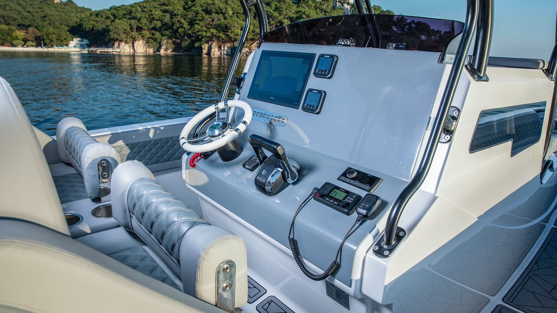 See upgrades ref color. - 2 x Large fixed helm seats with two LED