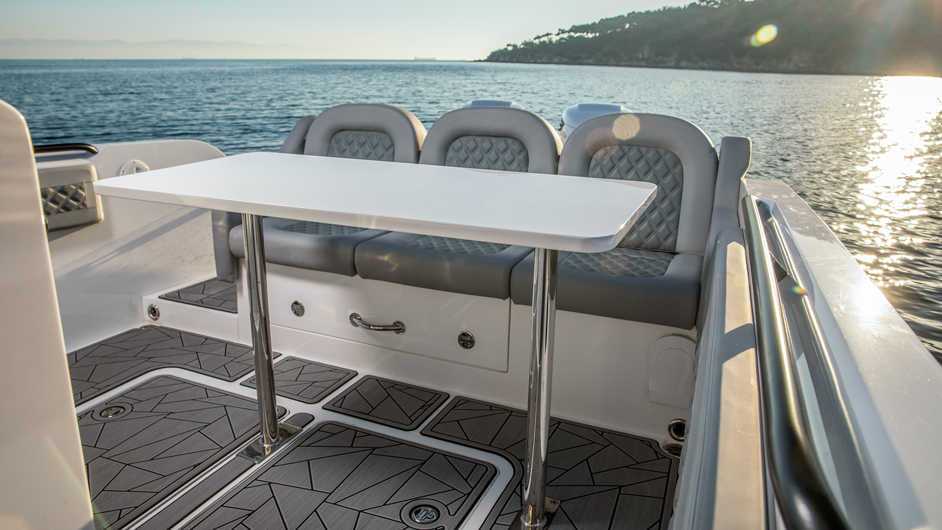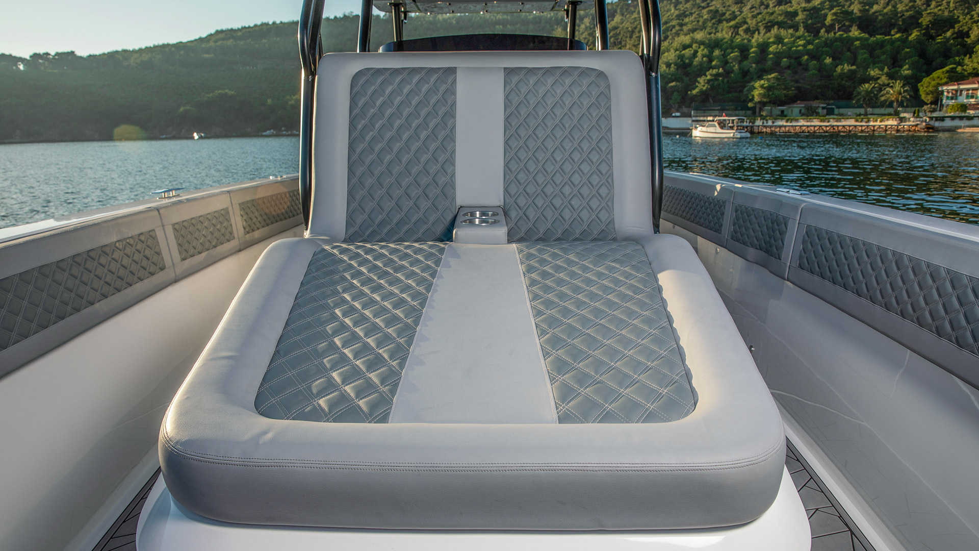 - Large sun pad on the front of the console with diamond luxury cushions 2 x cup holders and 2 x handrails on the side