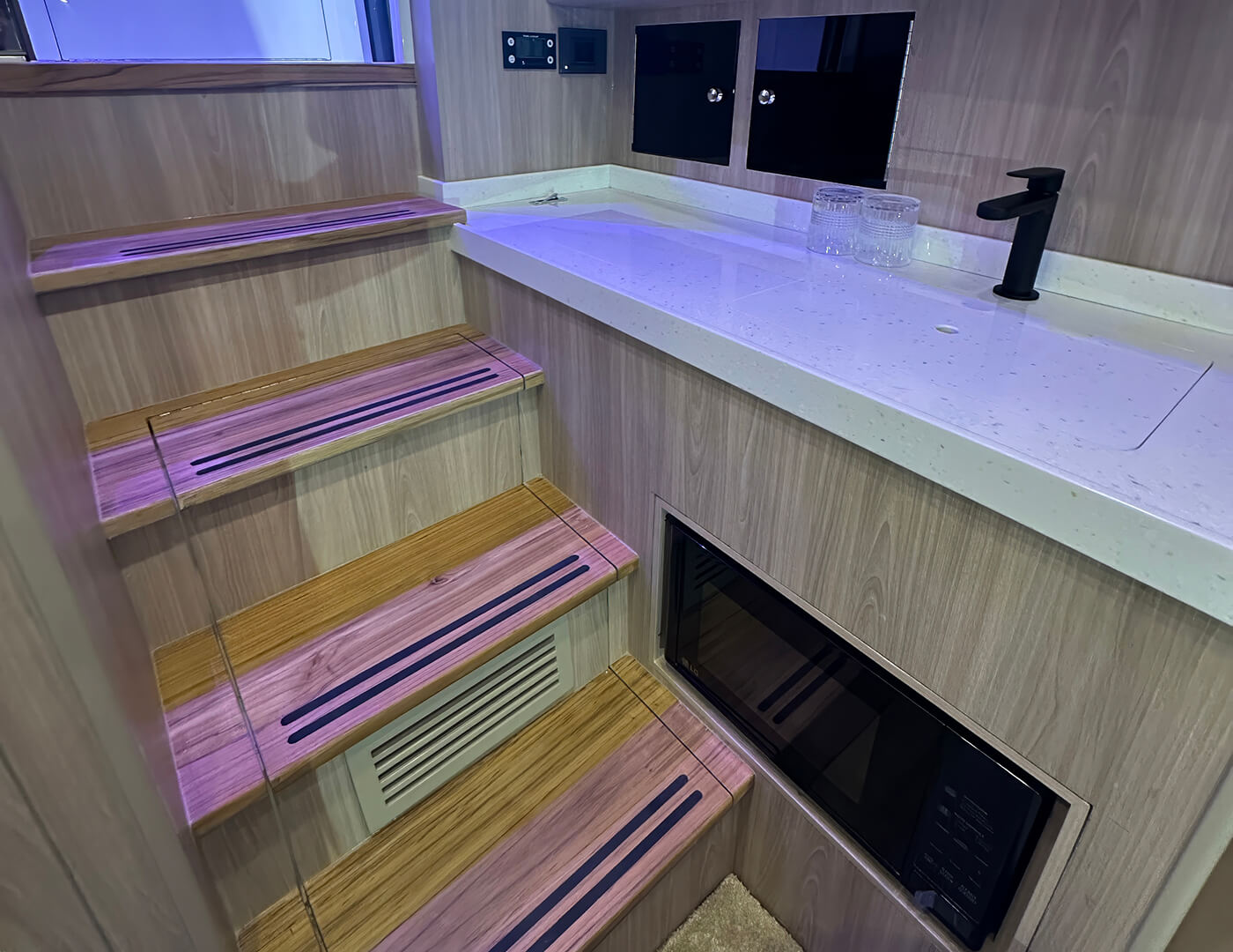 - 4 x Teak Steps with Anti-Slip (Cabin Entry) & Strip Light