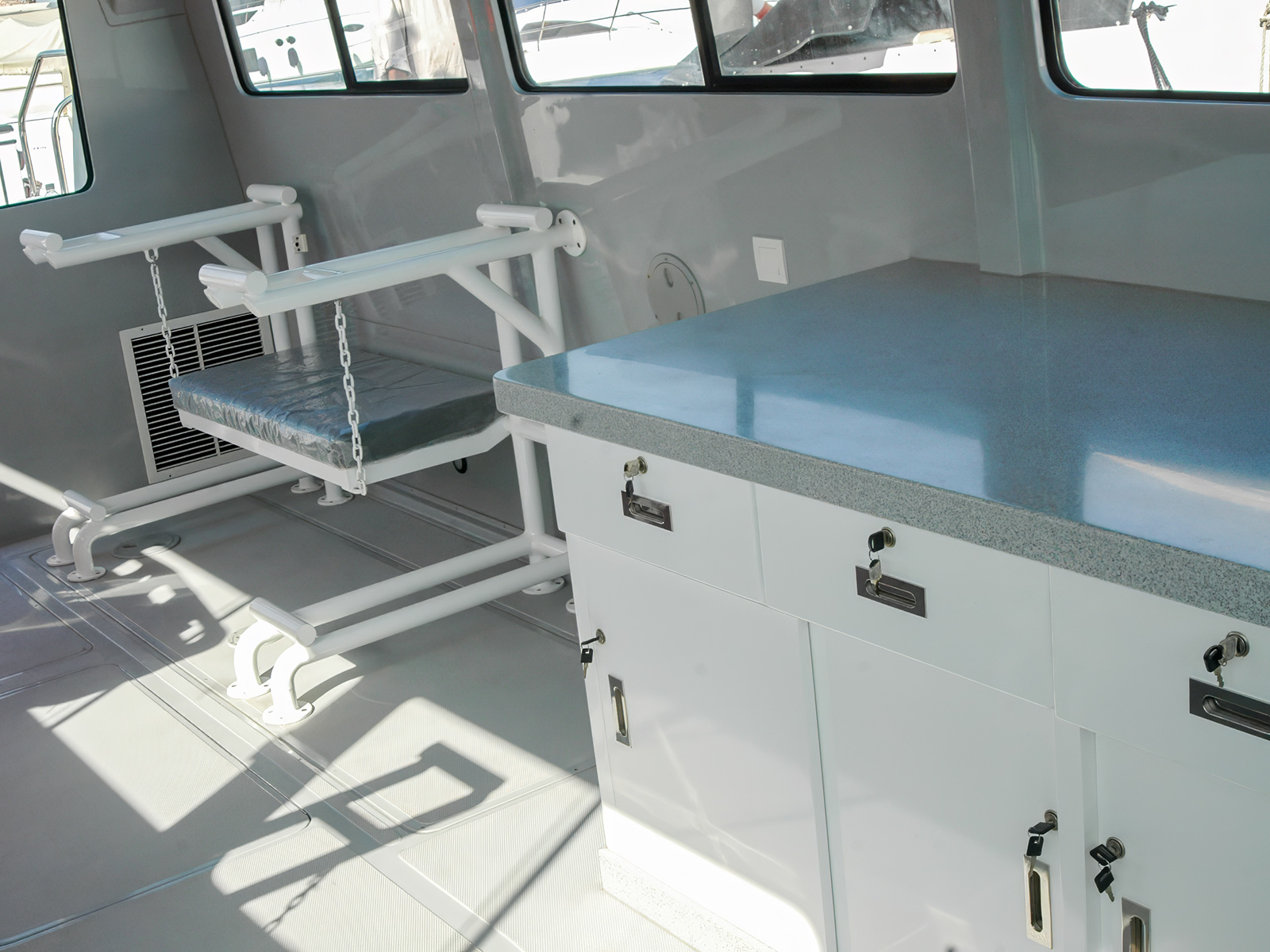 & Aluminum frame cabin sliding Perspex windows - Aft deck, STBD side door for embarkation