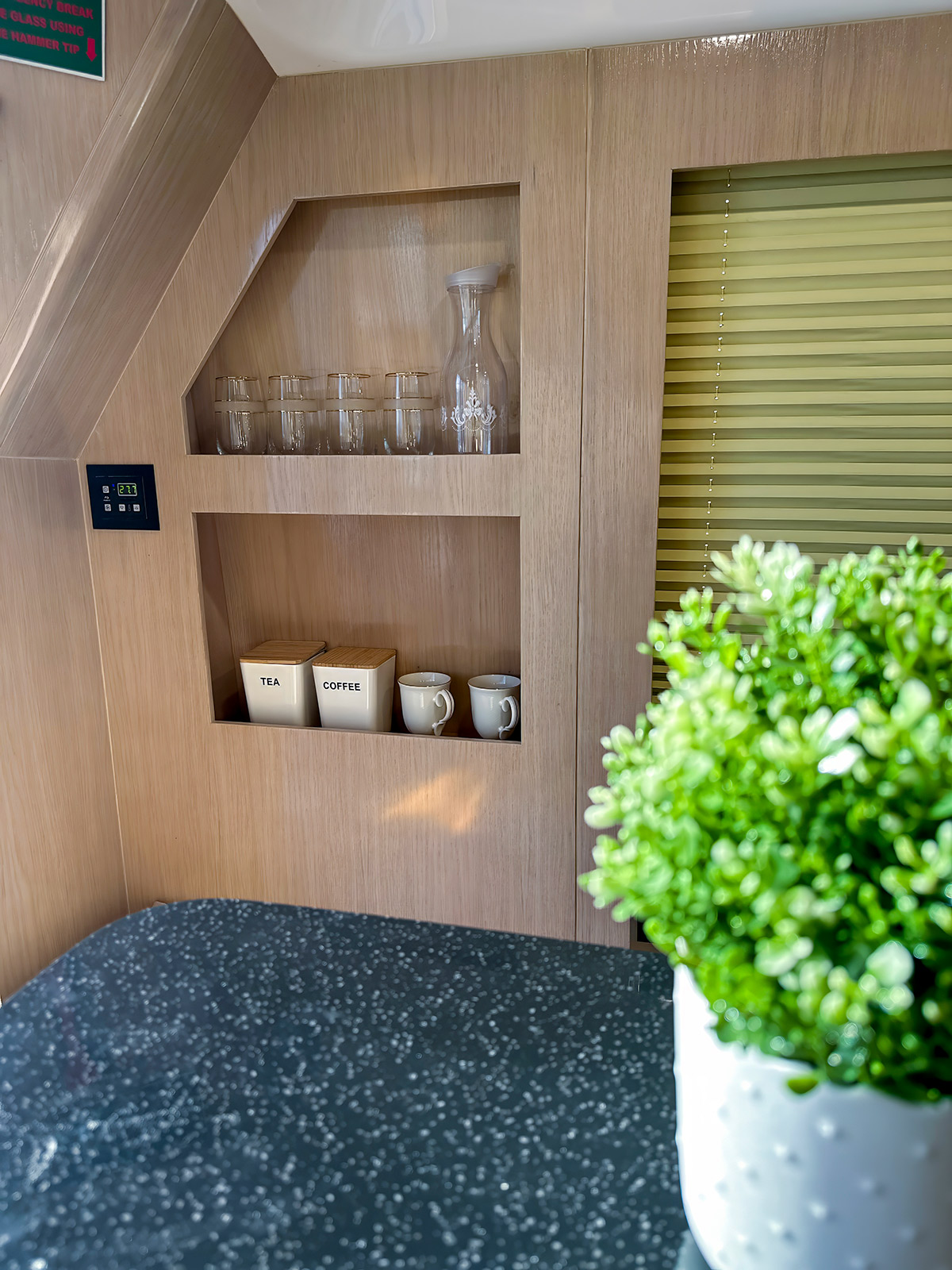 • 1 x Front luggage shelve with corian top & stainless steel rail