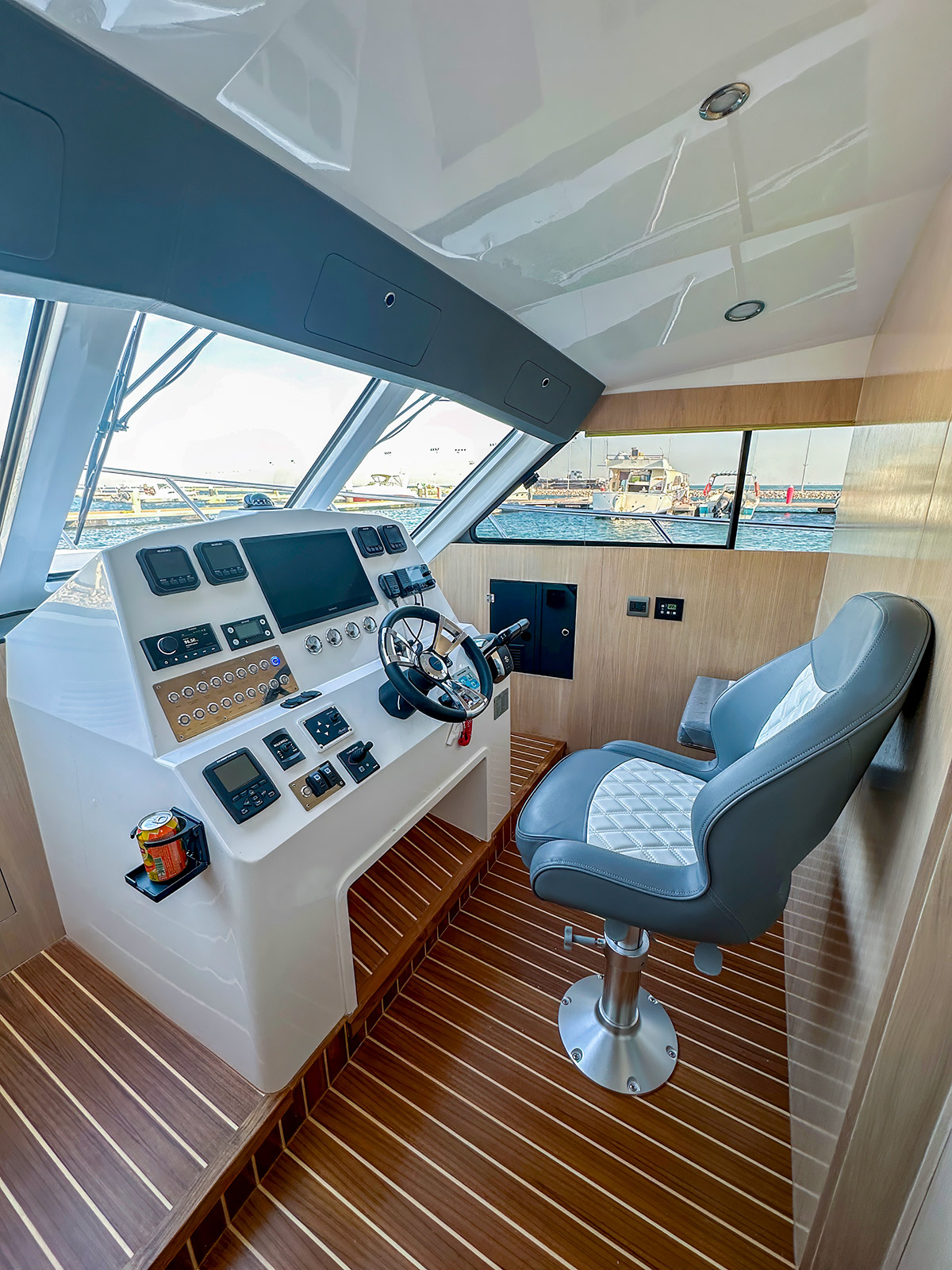 • 1 x Foldable seat in wheel house with counter storage and cabinet close in Captain entrance door